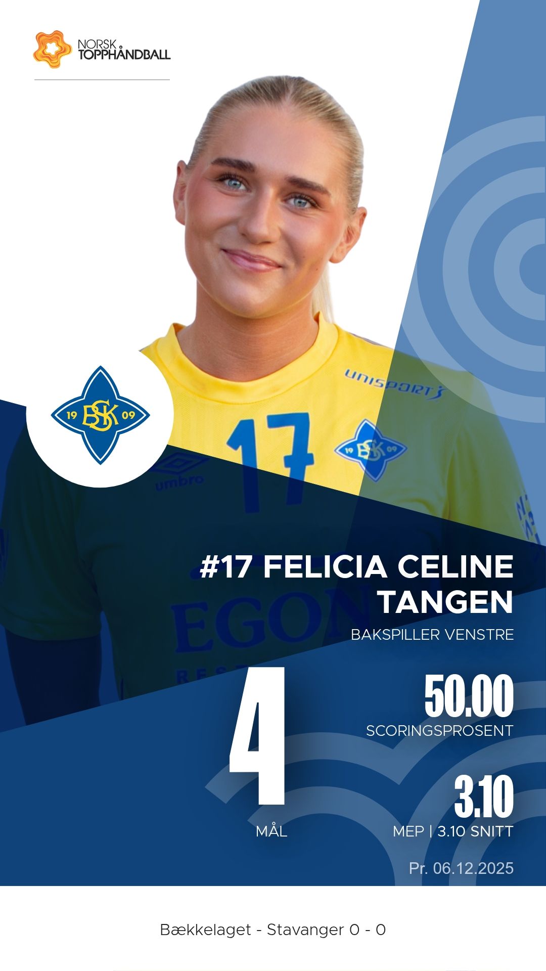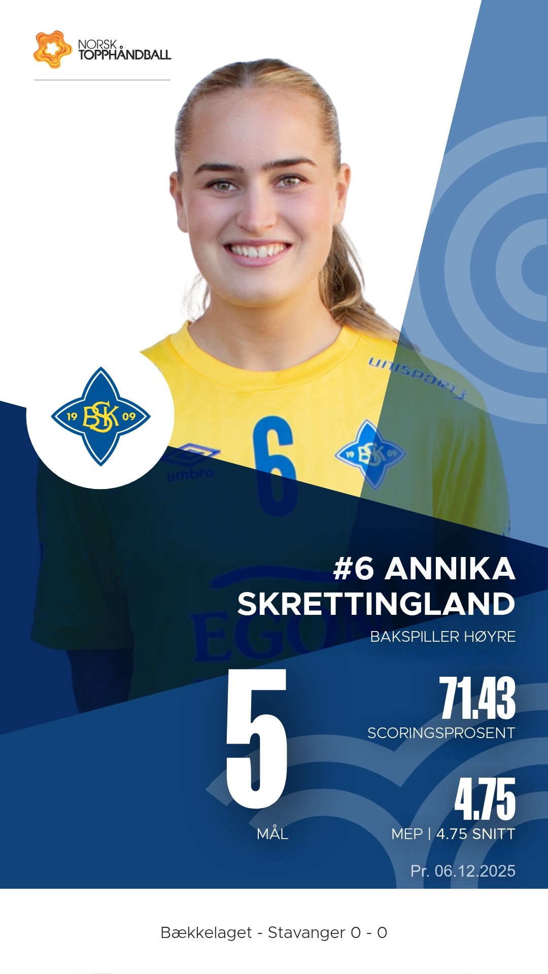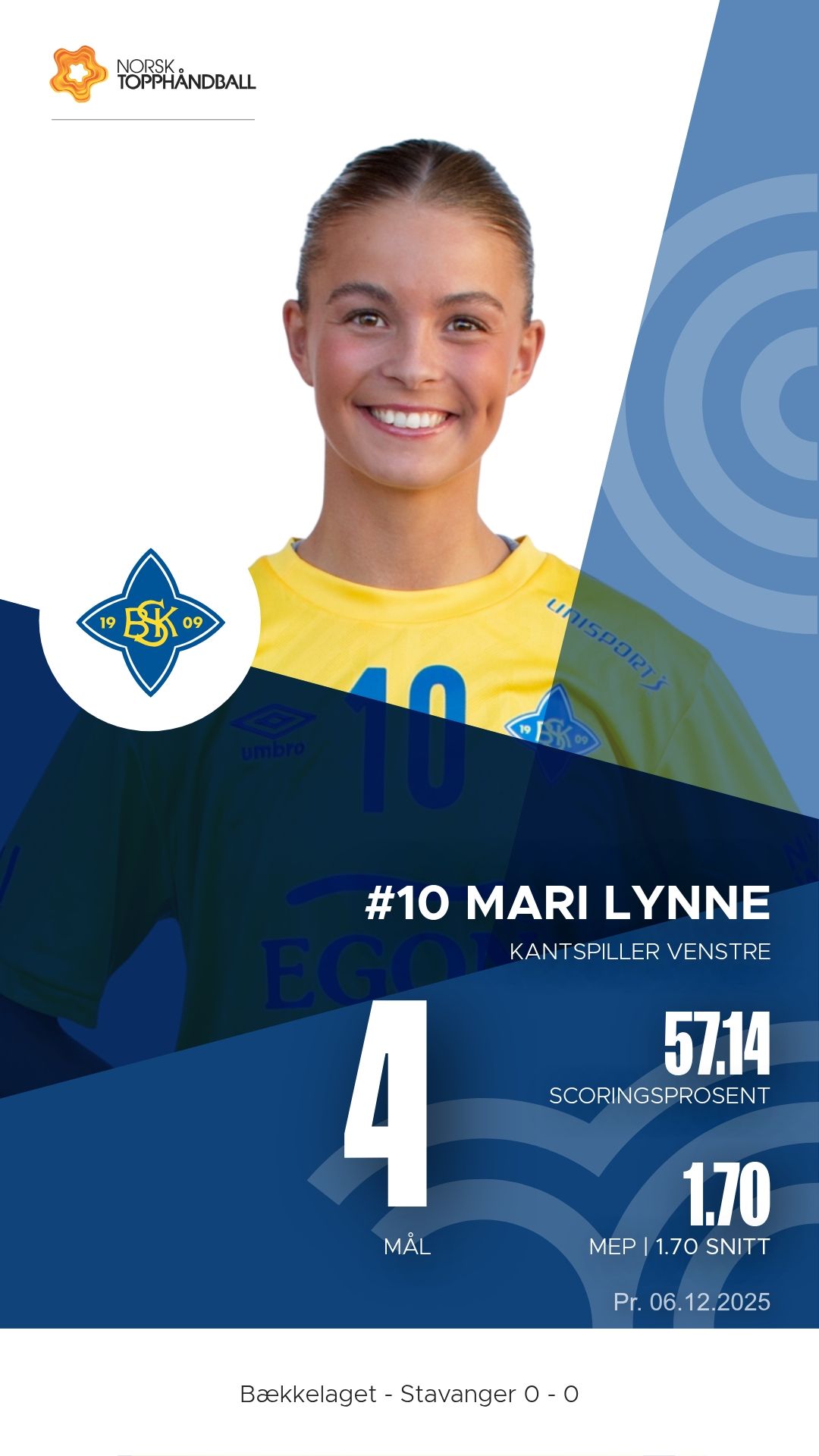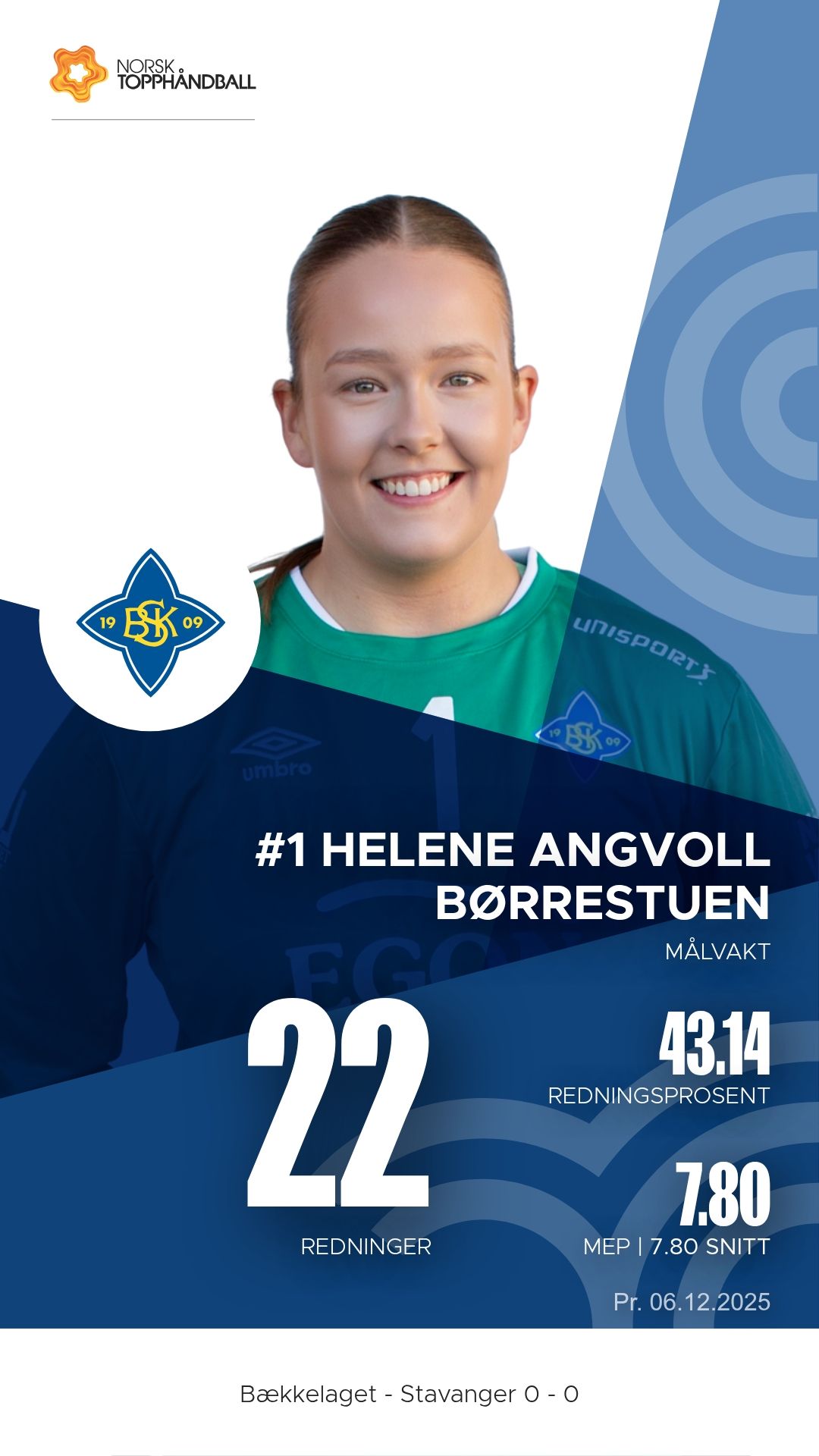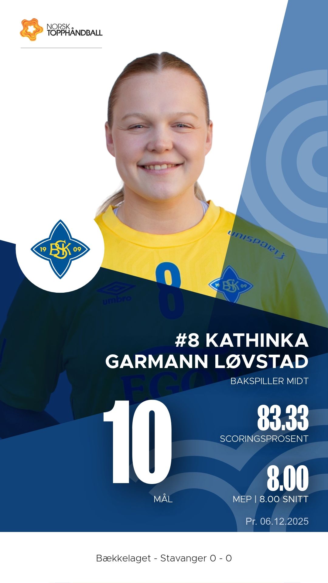 Bækkelaget tok imot Stavanger i Ekeberghallen lørdag 6. desember 2025 til et oppgjør i 1. divisjon kvinner. BSK leverte en gjennomført kamp og vant til slutt 36–30 etter å ha ledet 18–14 ved pause.