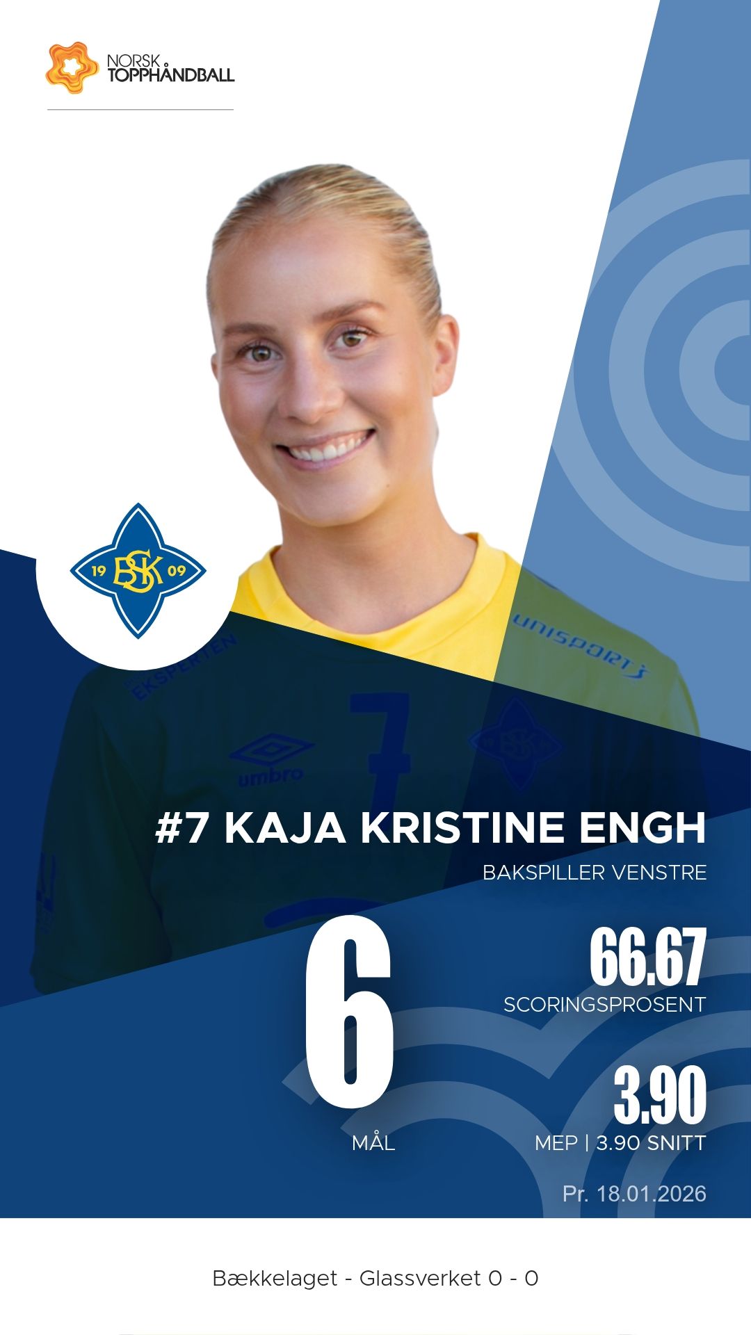 Kaja Kristine Engh ble Bækkelagets mest effektive spiller med seks mål og fire målgivende pasninger. Hennes kombinasjon av styrke og presisjon gjorde henne til en tydelig leder i bakspillet. Felicia Celine Tangen var også sentral med fire mål og fem assists, mens keeper Lotte Prøsch med sine 17 redninger ble stående som en bauta bakerst. Maja Ellen Sannholm og Live Ramsli Søyland bidro med viktige mål i avgjørende faser.